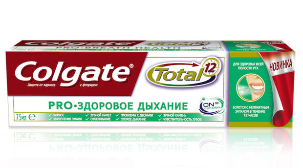 Компания Colgate выпустила на российский рынок новую зубную пасту – Colgate Total Pro – Здоровое Дыхание. Новинка устраняет стойкие неприятные запахи и обеспечивает здоровое и свежее дыхание в течение 12 часов. Самые распространенные причины галитоза (научное название неприятного запаха изо рта) – заболевания зубов и пародонта (85%).